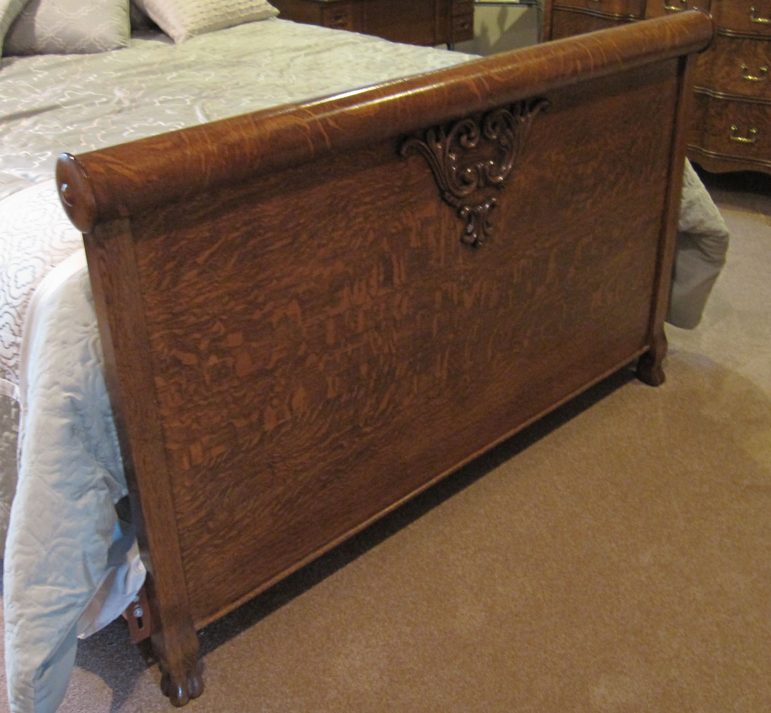 Bed has been set-up with a Queen-size mattress conversion kit. May still be used as full-size with original side rails if desired.