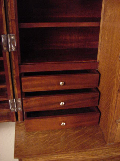 Solid mahogany on interior drawers and shelves