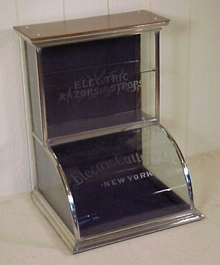 ELECTRIC RAZORS AND STROPS DISPLAY CABINET