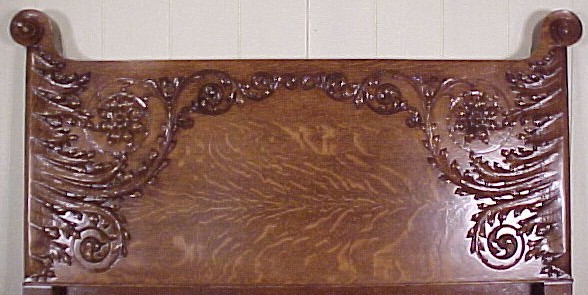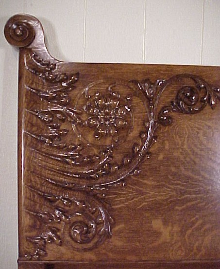 HEAVILY CARVED QUARTER-SAWN OAK BED