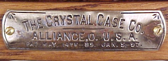 signed metal plate "CRYSTAL CASE CO." ALLIANCE, OHIO