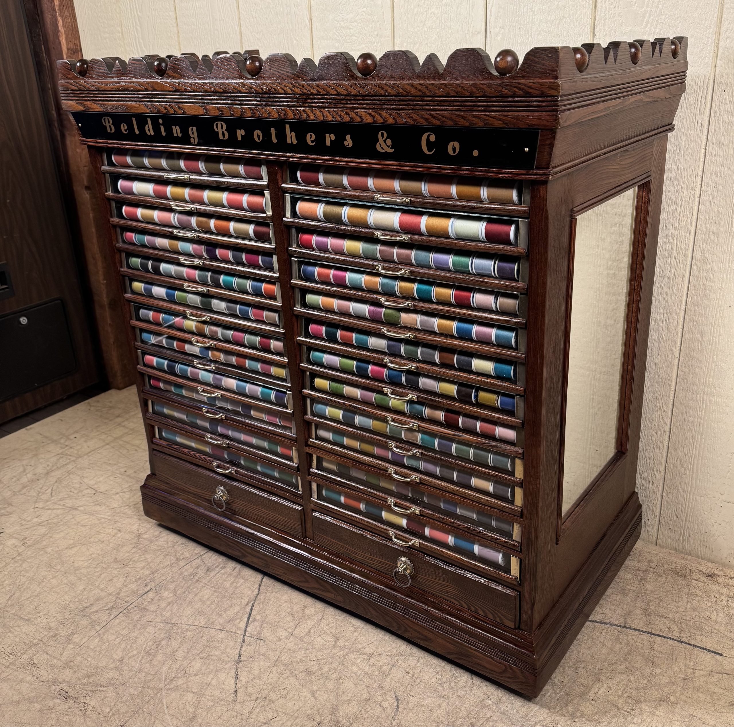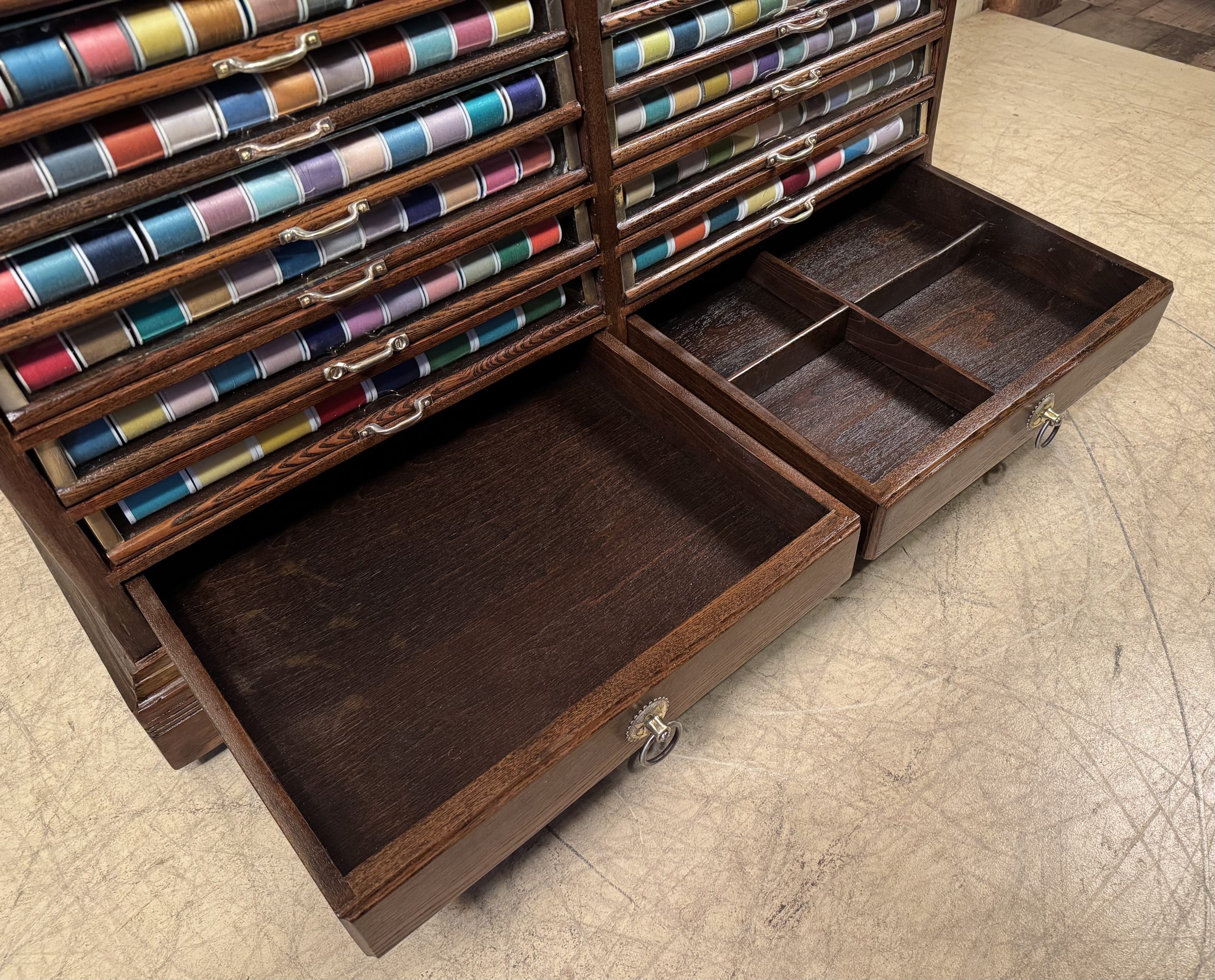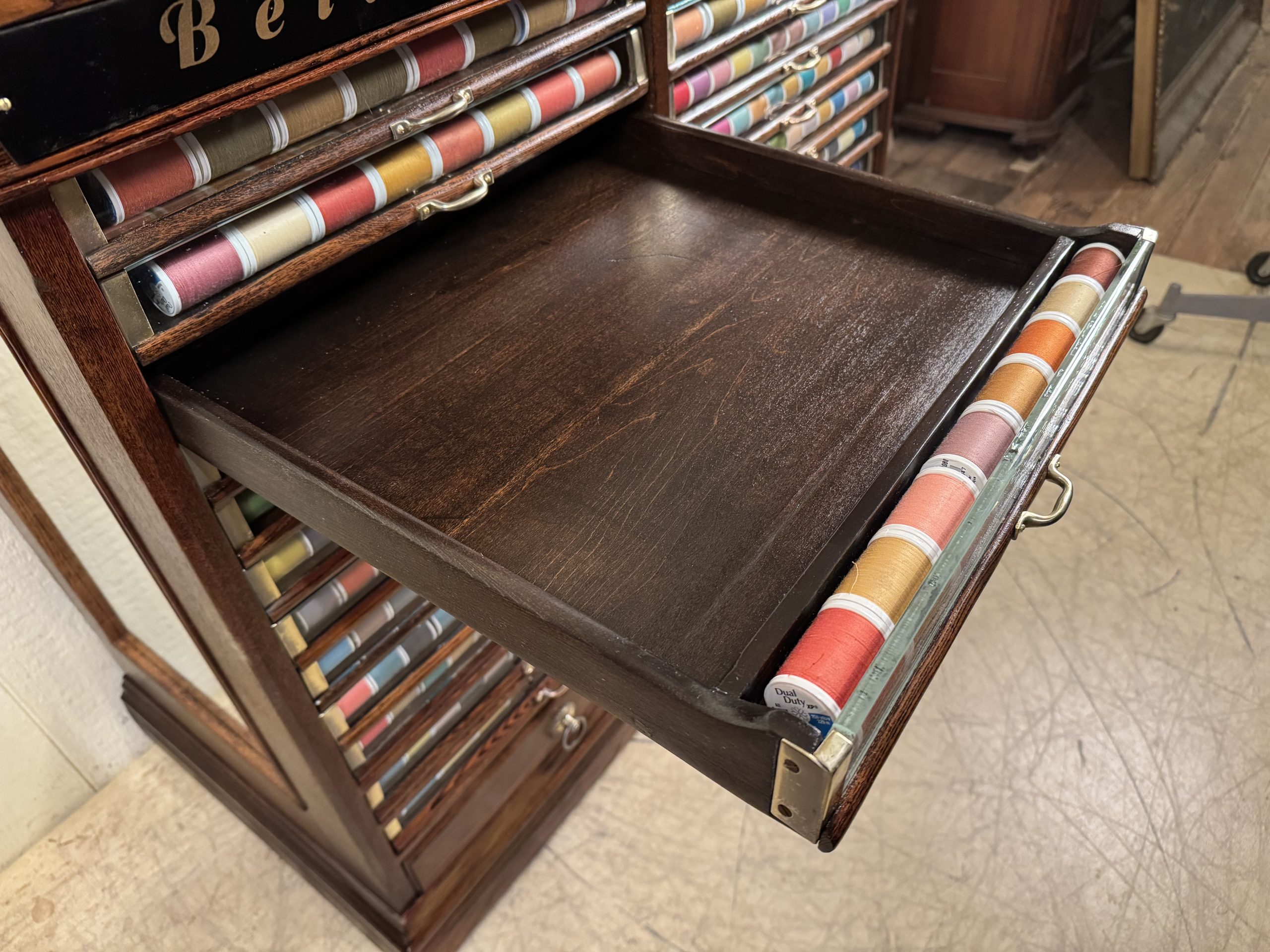 Has over $200 worth of new thread to enhance the look behind the glass fronts of the drawers