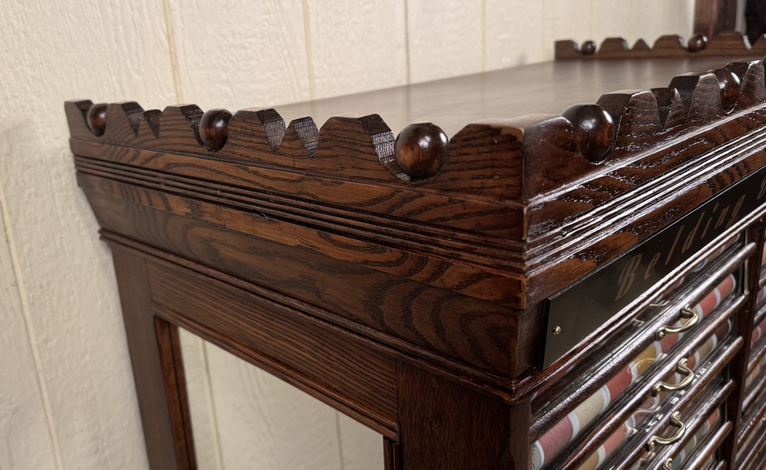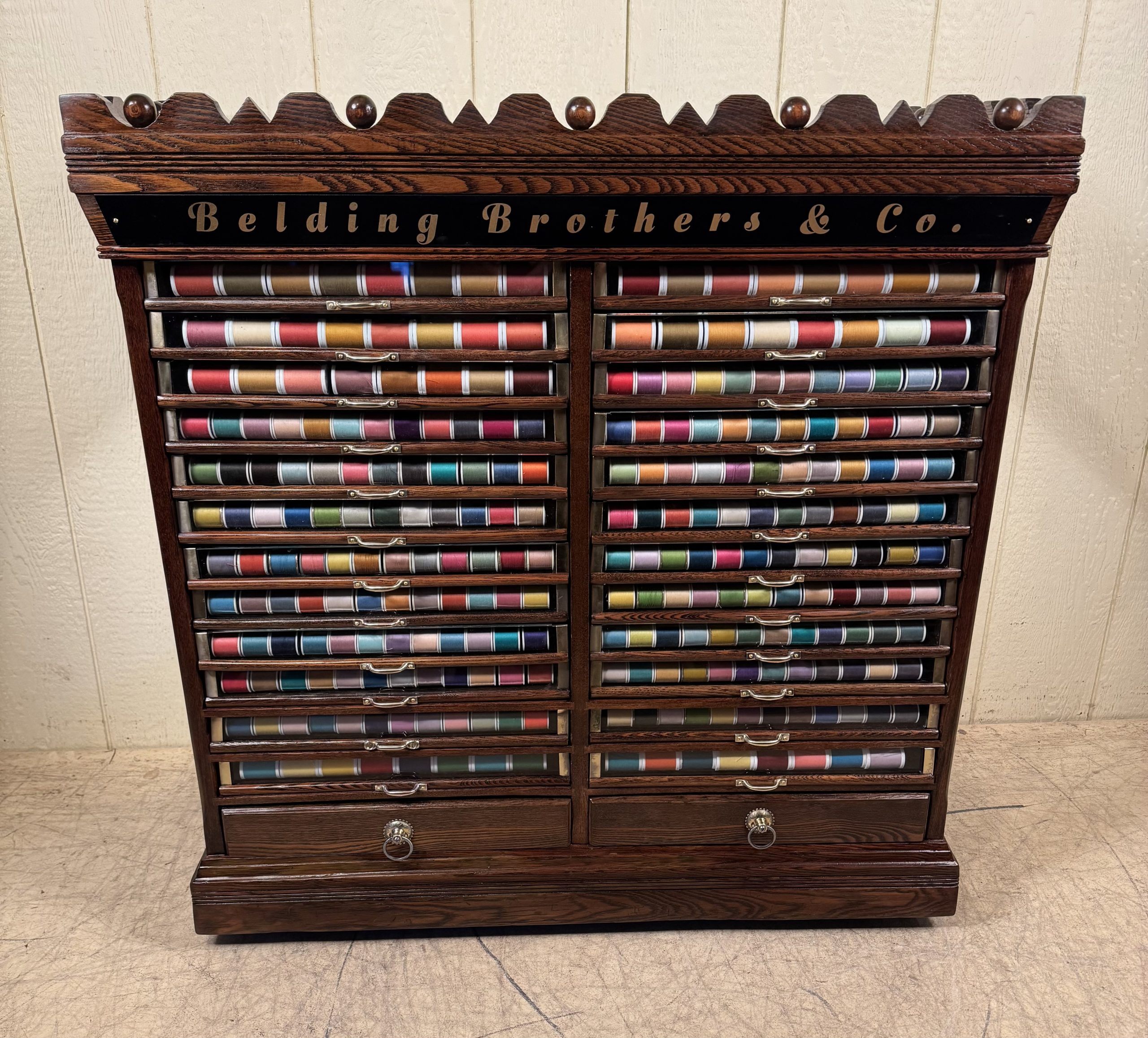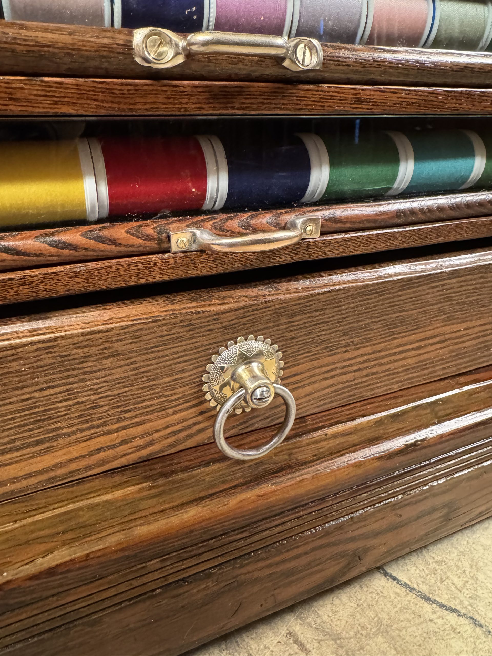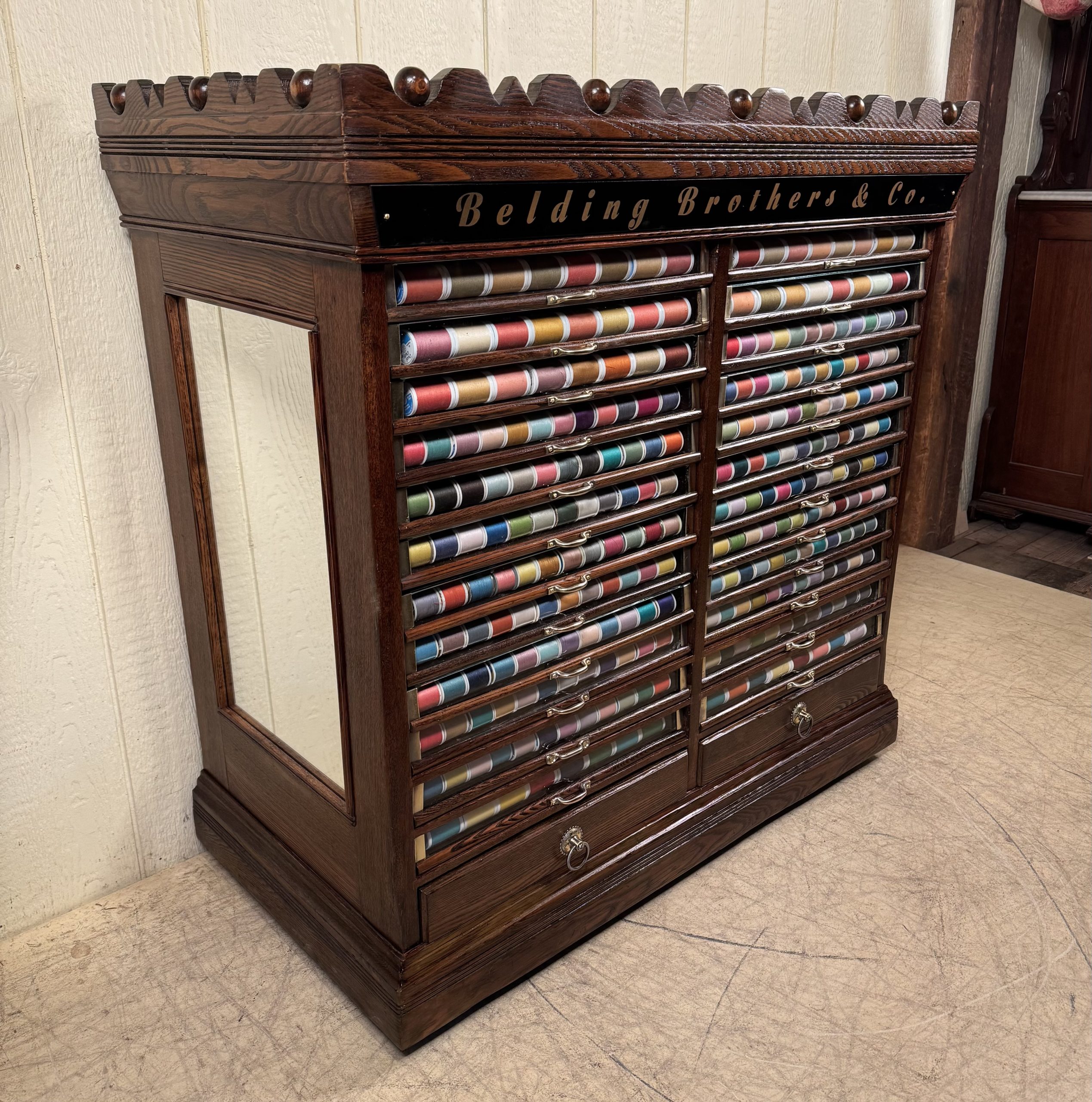 Has over $200 worth of new thread to enhance the look behind the glass fronts of the drawers