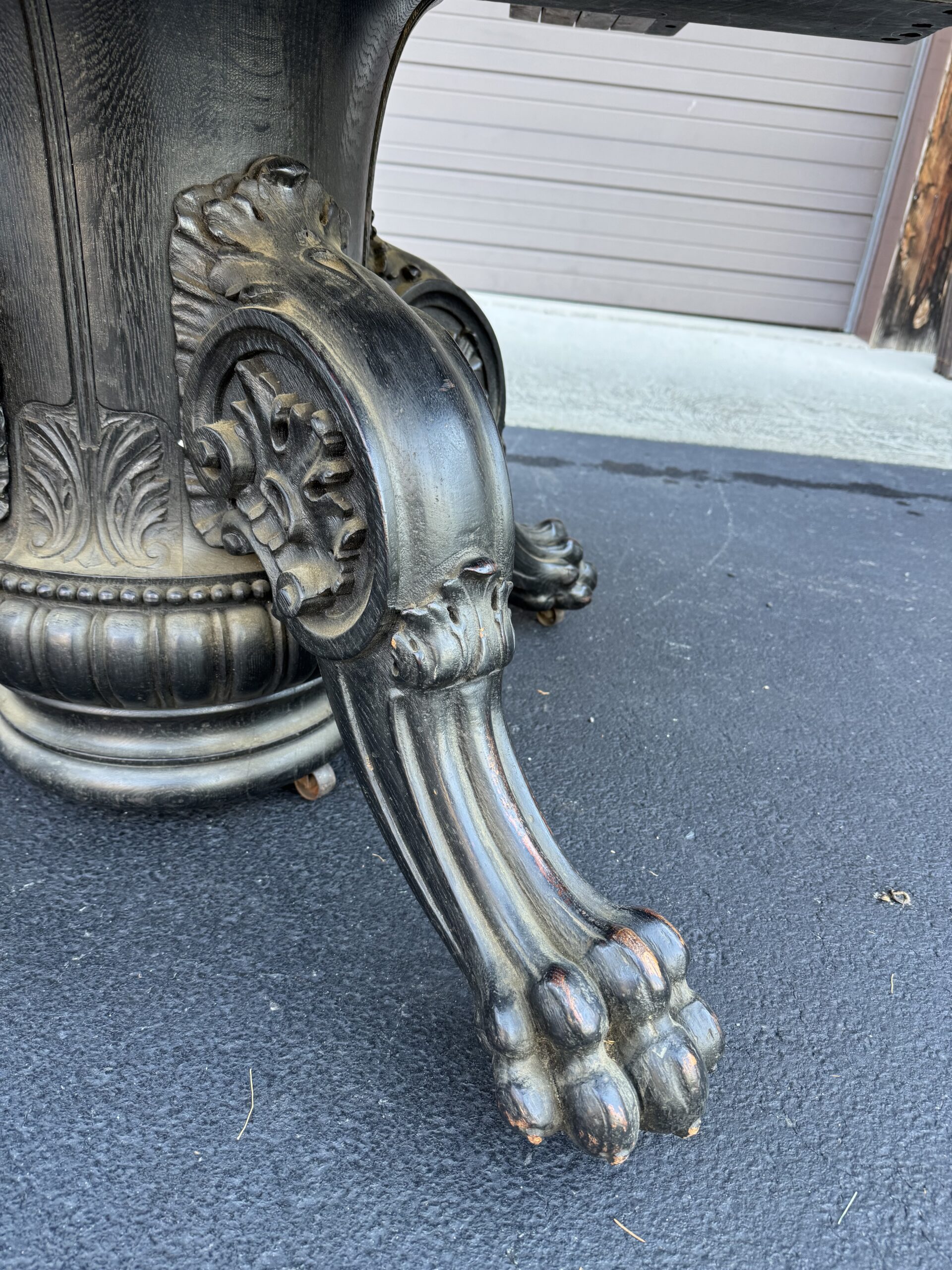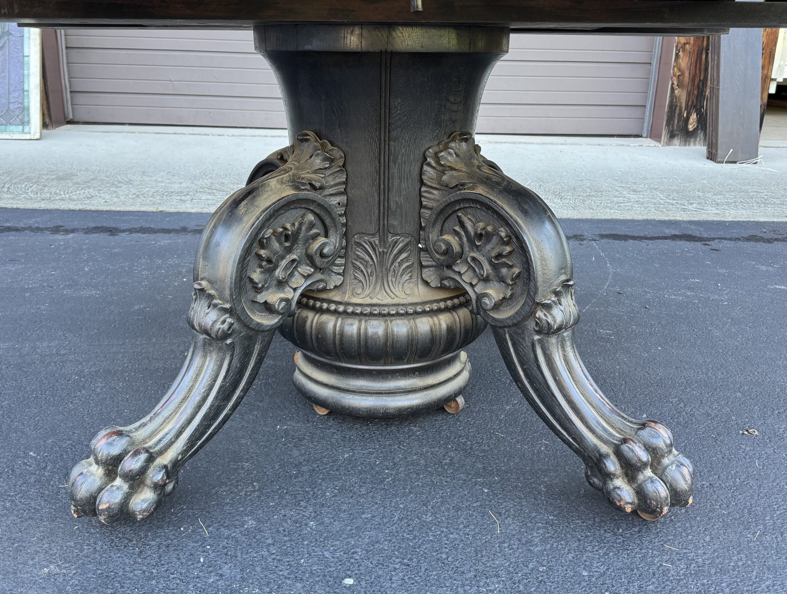 Exceptional 60″ Round Oak Dining Table with Carved Apron