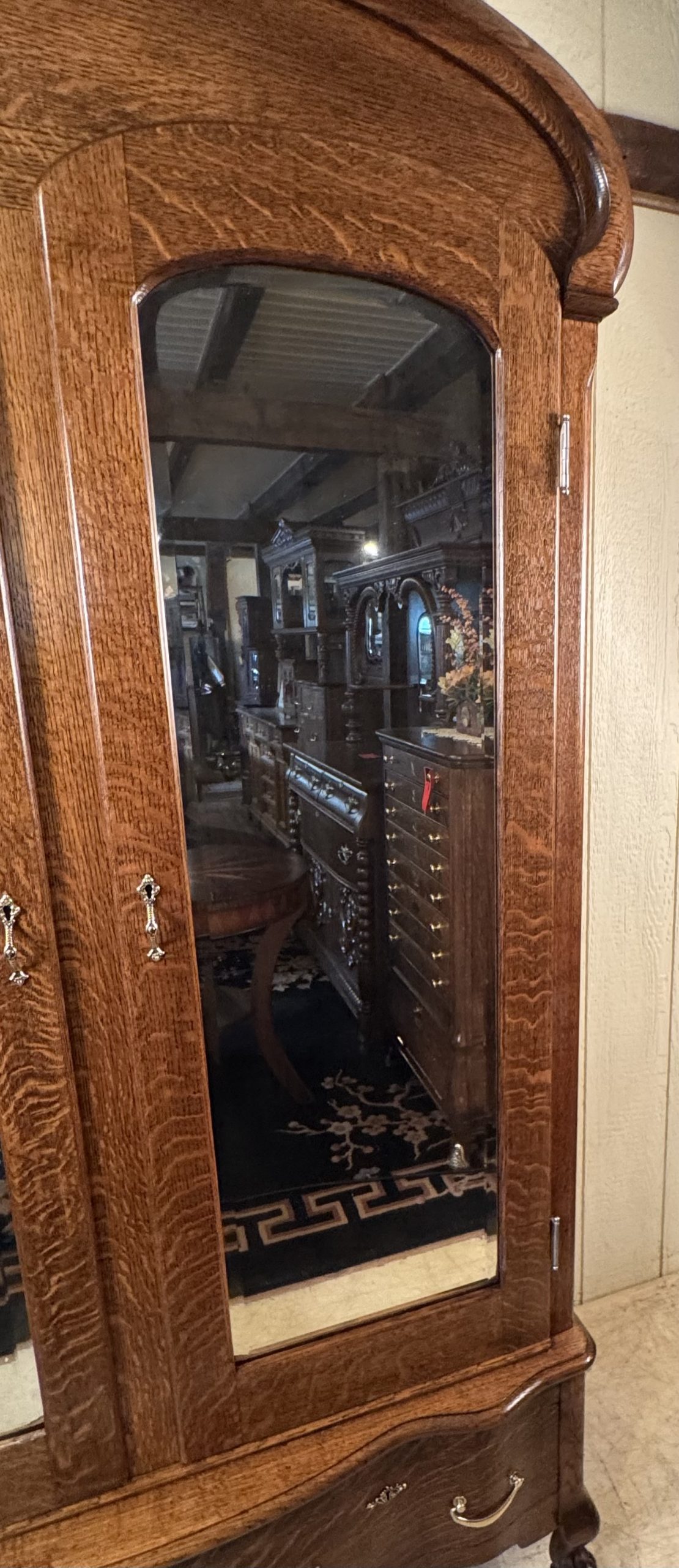 Oak Dome-Top Wardbrobe/Armoire with beveled glass doors
