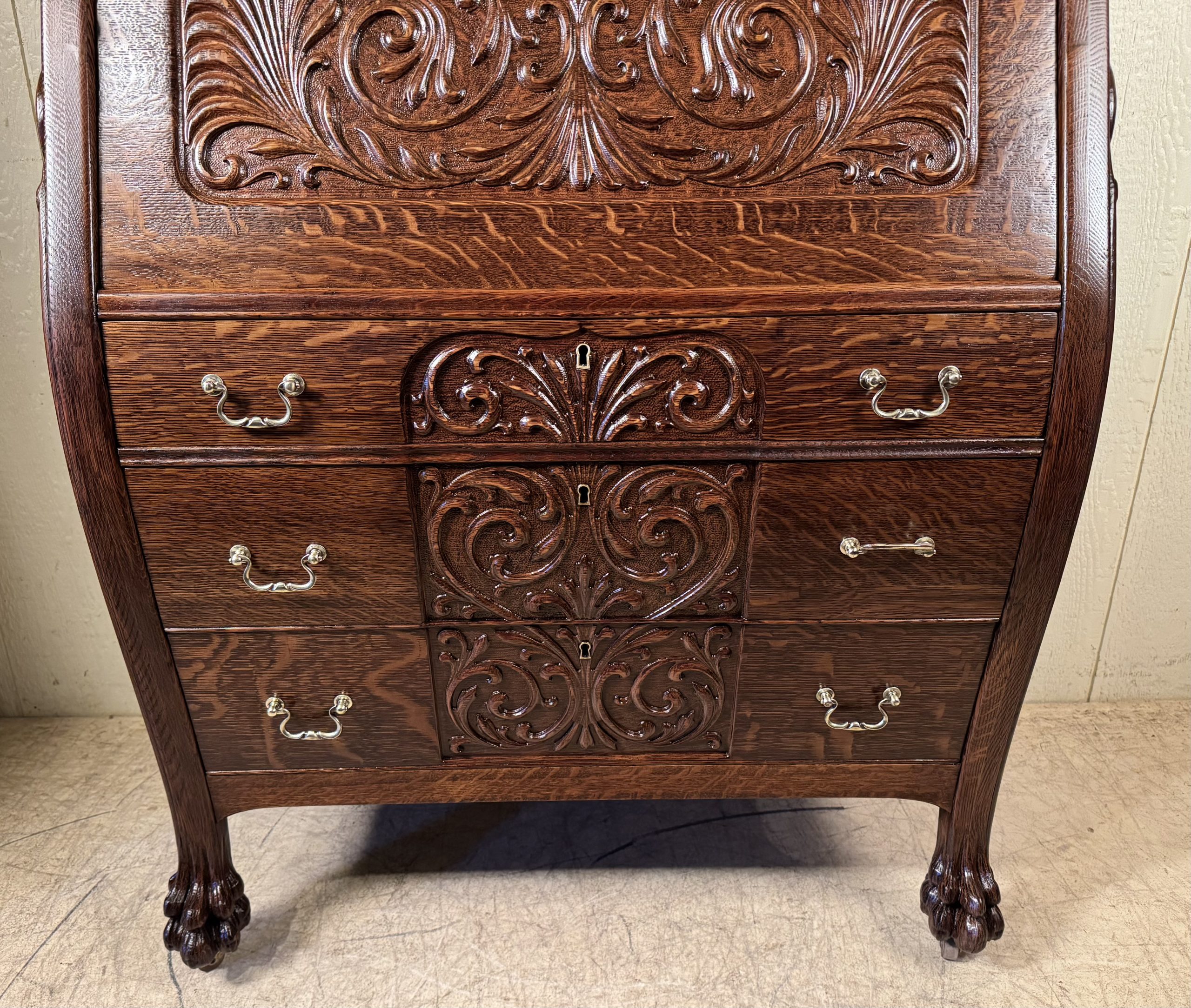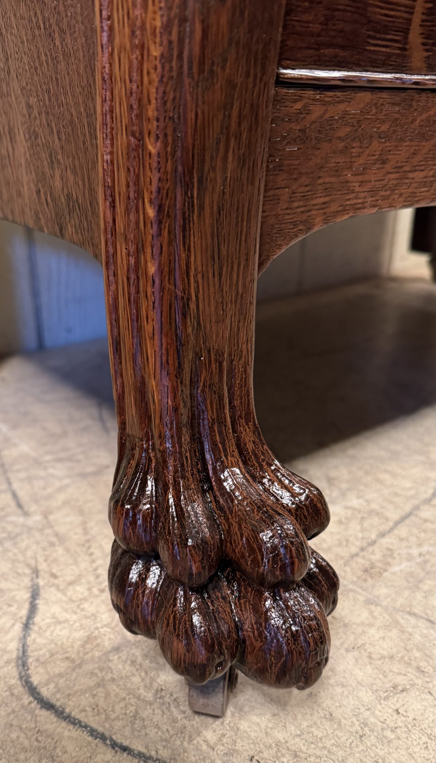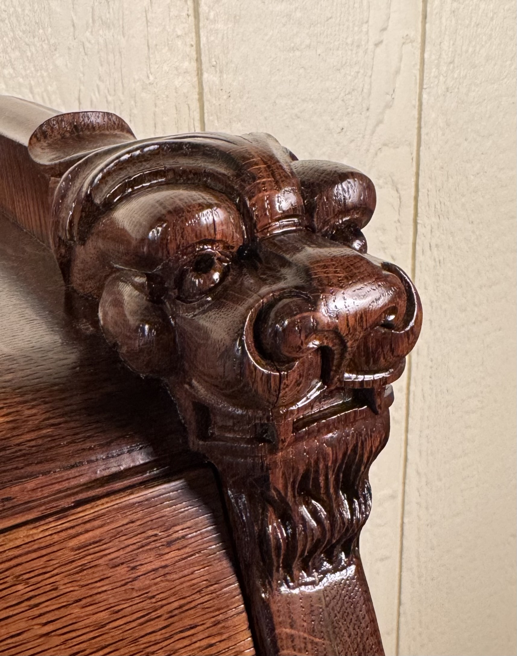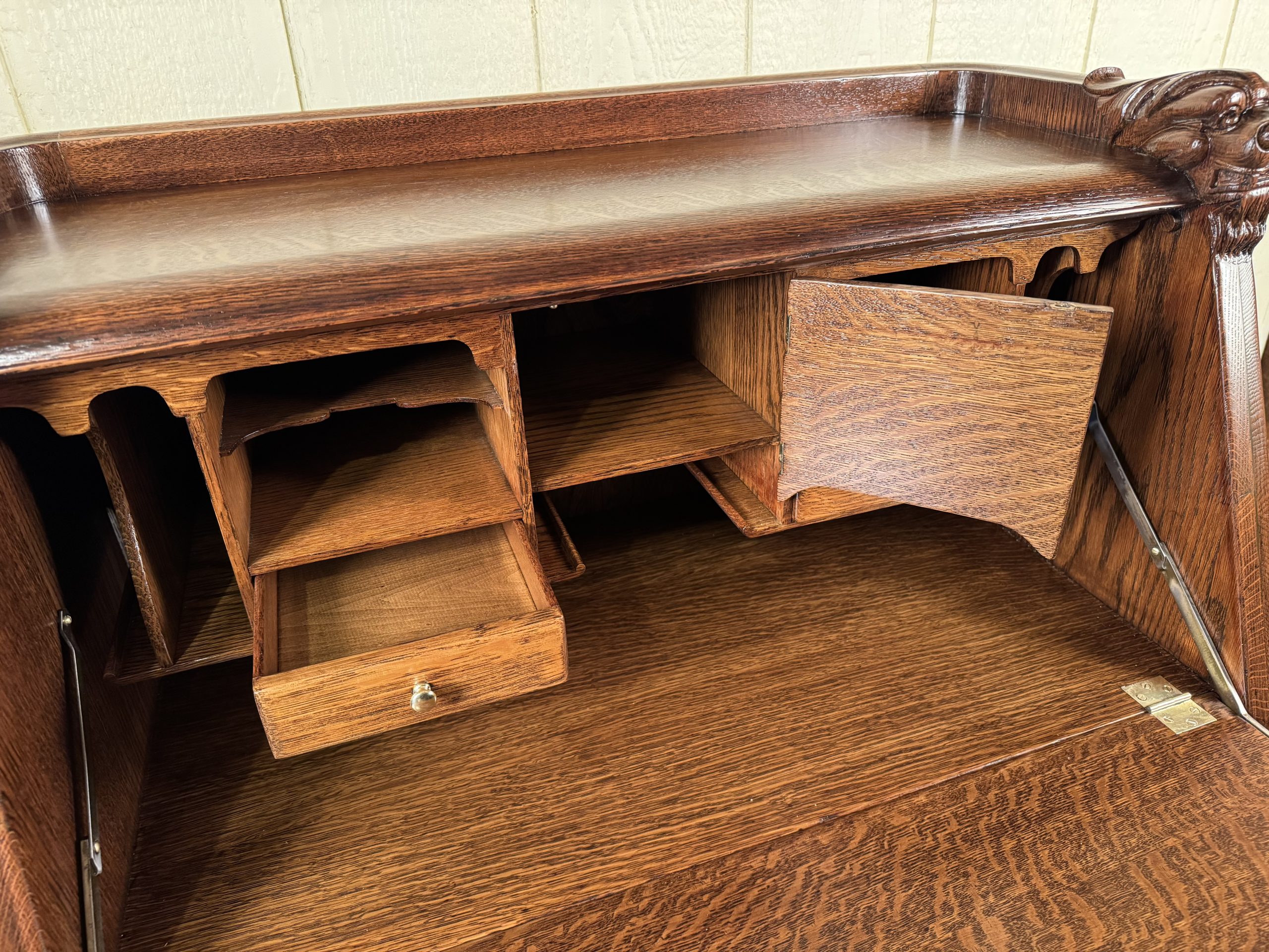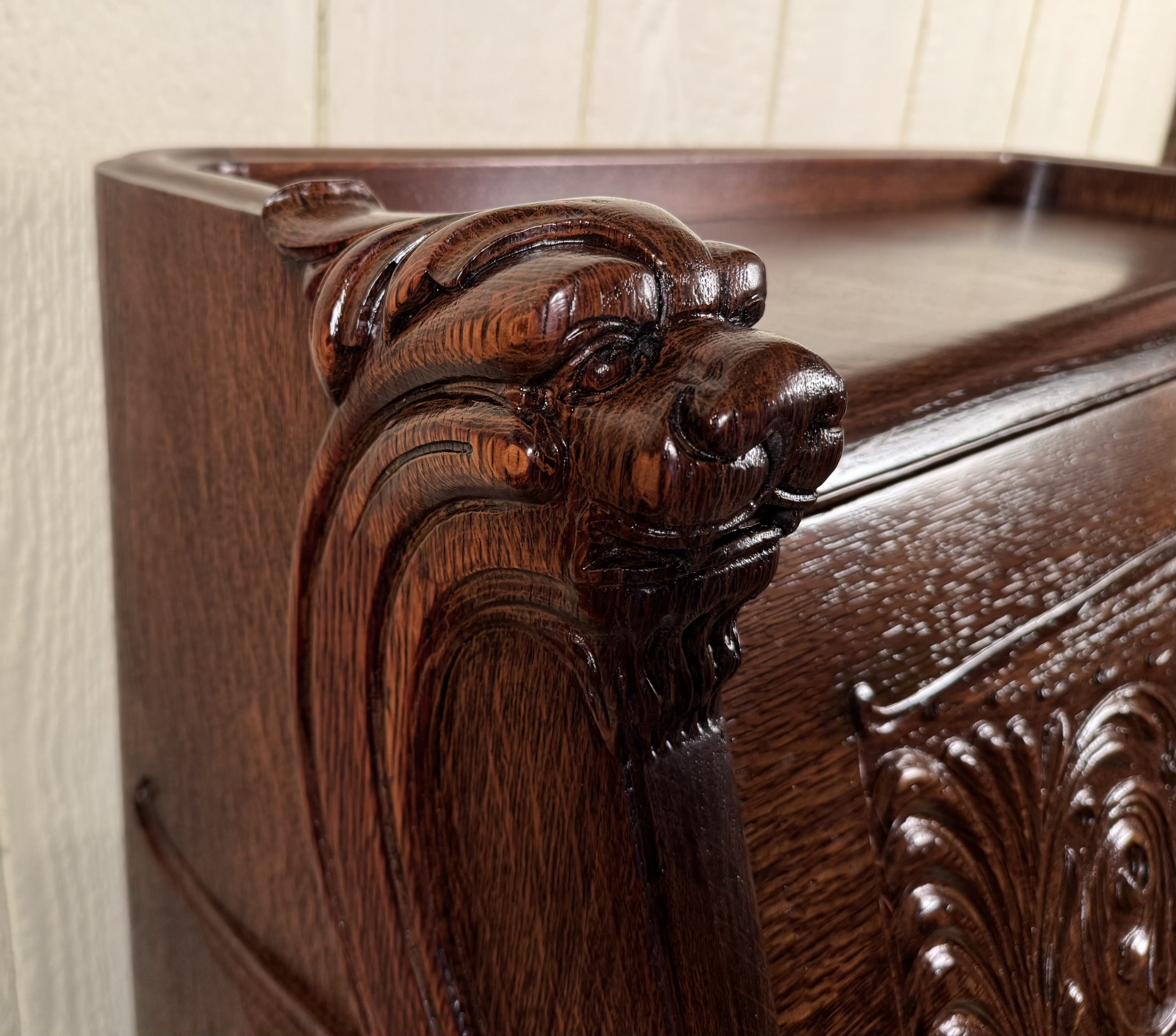 Oak Drop Front Desk with Carved Lion Heads