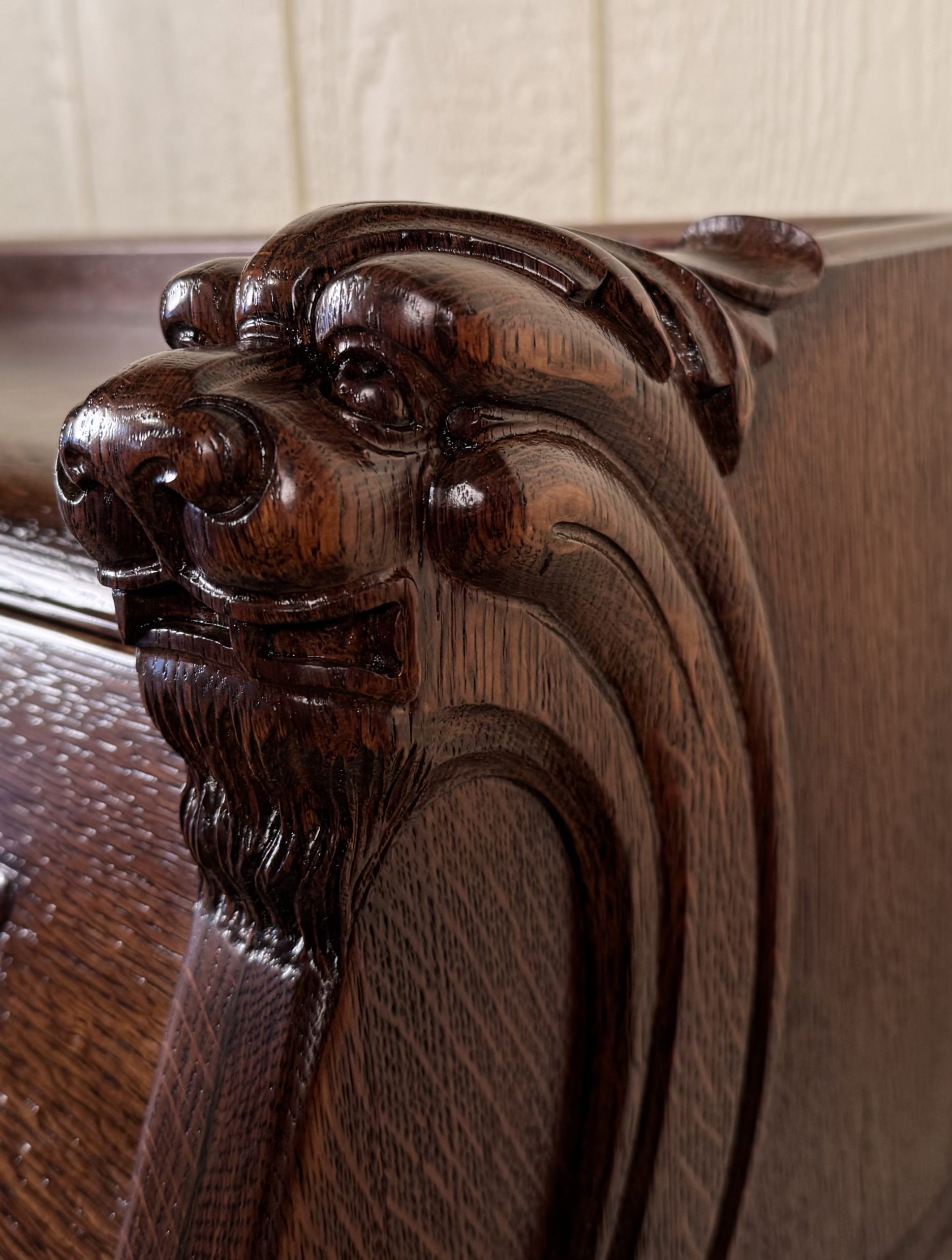 Carved Lion Heads on top of desk sides